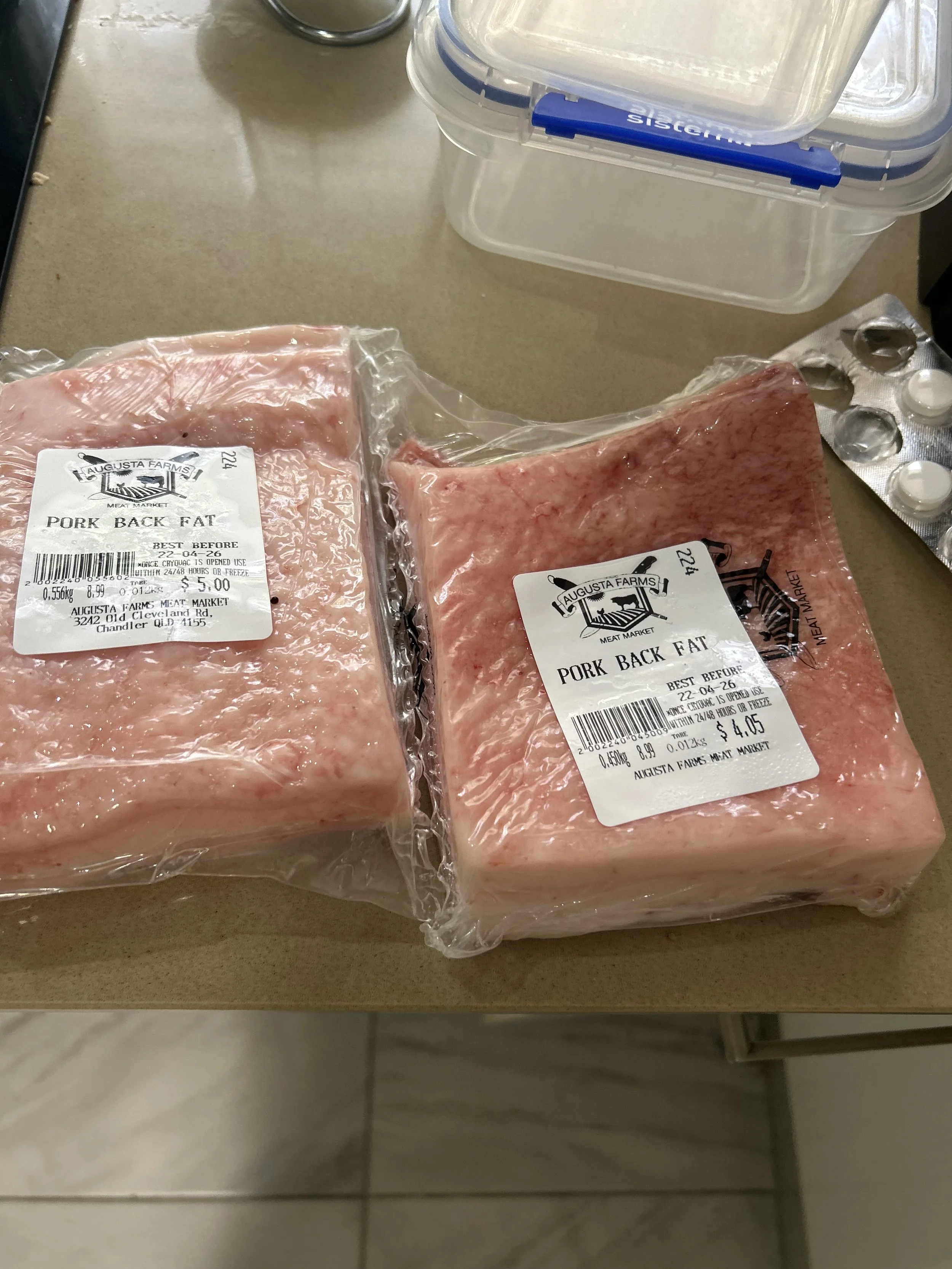 - 1kg pork back fat, cut into small cubes with any meat removed.